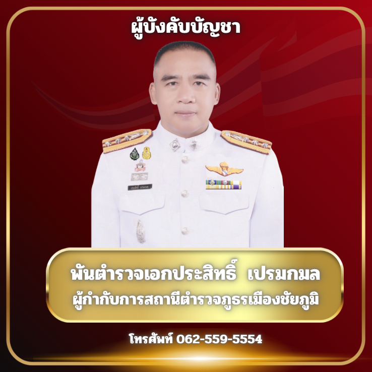 รียน ผู้บังคับบัญชา วันนี้ 24 มี.ค.2568 เวลา 09.30 น. พ.ต.อ.ประสิทธิ์ เปรมกมล ผกก.สภ.เมืองชัยภูมิ พ.