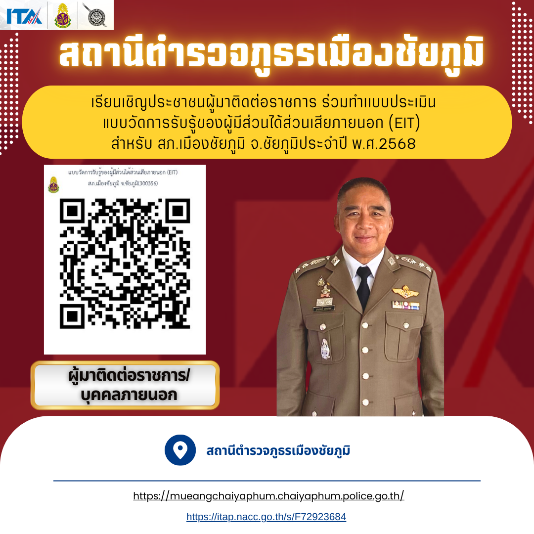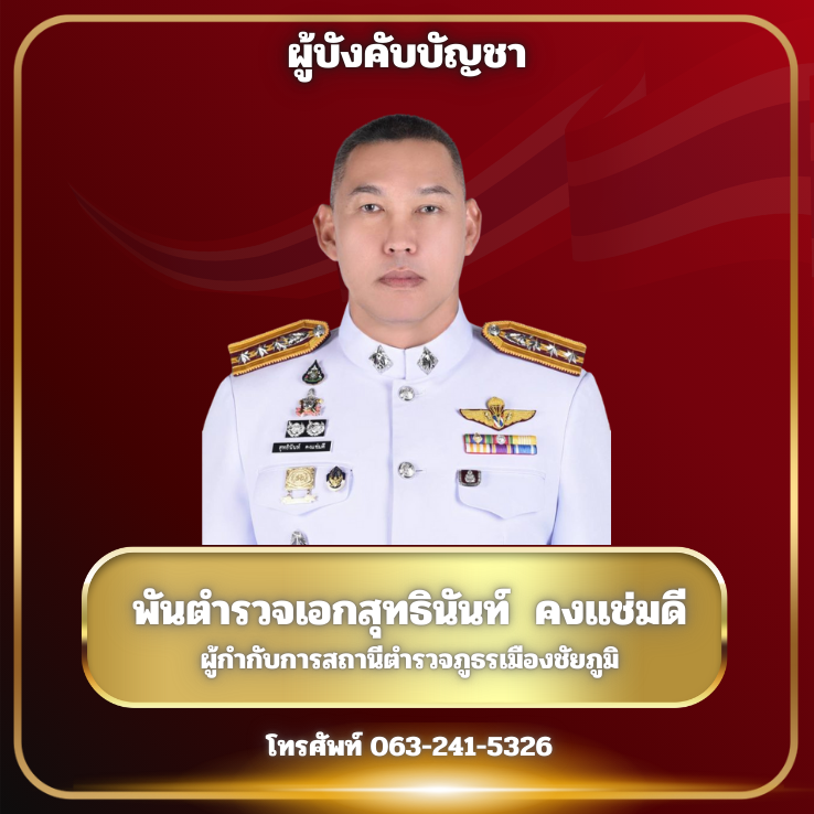 เรียน ผู้บังคับบัญชา เพื่อโปรดทราบ สภ.เมืองชัยภูมิ วันนี้ 26 ก.พ. 2568 เวลา 10.00 น. พ.ต.อ.ประสิทธิ์