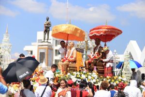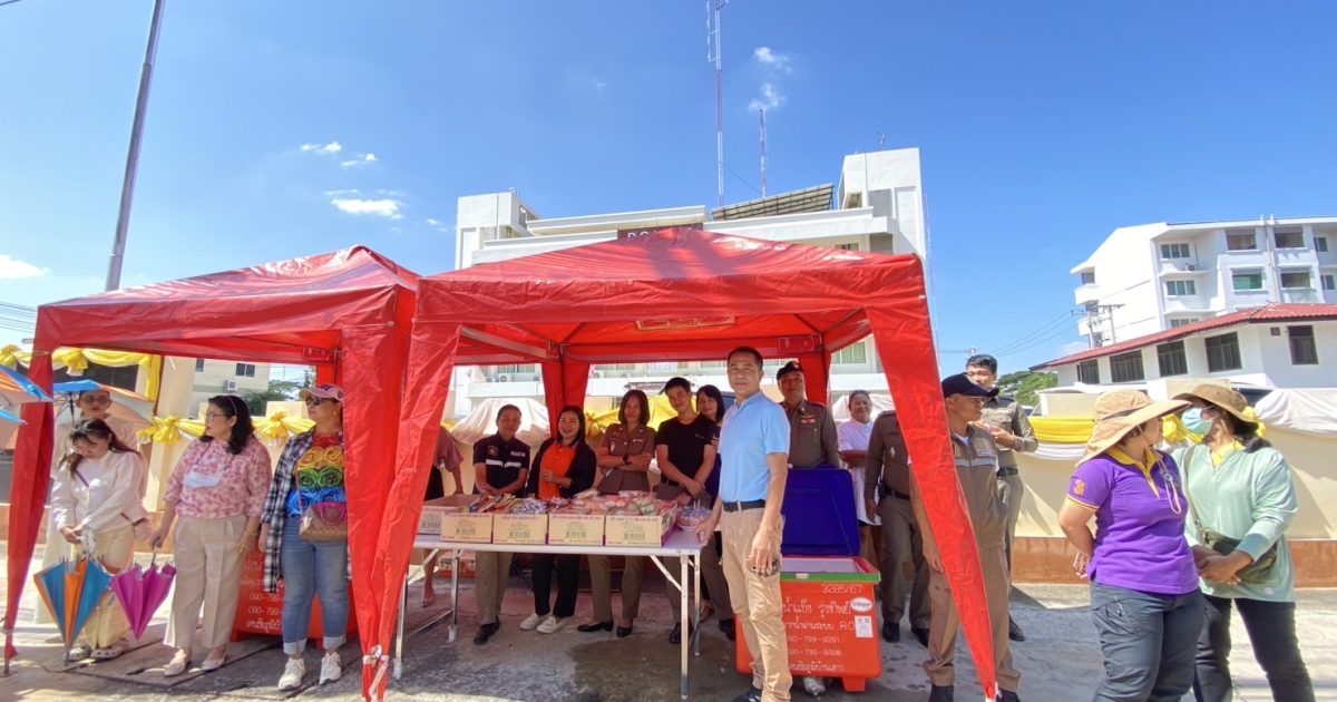 งานอำนวยการร่วมจัดจุดบริการเเจกน้ำดื่ม ขนมฯ ในงาน บุญเดือนหก แห่ฉลองเจ้าพ่อพญาเเล บริเวณหน้า สภ.เมืองชัยภูมิ