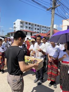 งานอำนวยการร่วมจัดจุดบริการเเจกน้ำดื่ม ขนมฯ
