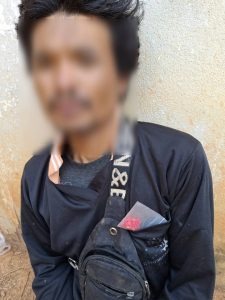 ๓.)ภาพถ่ายขณะจับกุมนายเอ็ม(นามสมมติ) พร้อมของกลาง จำนวน ๒ แผ่น