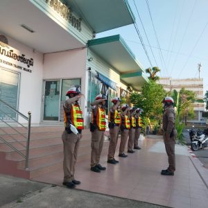 รอง สว.จร.สภ.เมืองชัยภูมิร้อยเวร 60 ได้เรียกแถวสายตรวจจราจร ตรวจจำนวน มอบหมายภารกิจประจำวัน ก่อนปล่อยแถวออกปฏิบัติหน้าที่ในเขตรับผิดชอบและชี้แจงข้อปฏิบัติ ดังนี้