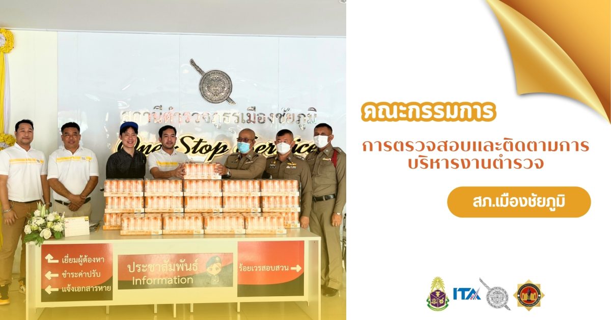 วันนี้เวลา 11.00 น. นายคม สัมนันธารักษ์ กต.ตร.สภ.เมืองชัยภูมิ ได้ส่งมอบน้ำดื่มสิงห์โซดา สนับสนุนให้ สภ.เมืองชัยภูมิ โดยมี พ.ต.ท.ชัยวัฒน์ ใจสบาย รอง ผกก.(สอบสวน)สภ.เมืองชัยภูมิ เป็นผู้เเทนรับมอบ