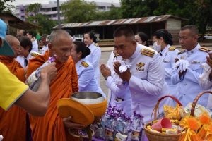ผกก.สภ.เมืองชัยภูมิ ร่วมพิธีตักบาตรพระสงฆ์ ถวายเป็นพระราชกุศล แด่สมเด็จพระนางเจ้าสุทิดา พัชรสุธาพิมลลักษณ พระบรมราชินี