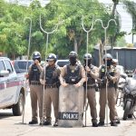ดูเเลความสงบ กลุ่มผู้ชุมนุมคัดค้านการสร้างโรงโม่หิน