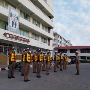 รอง สว.จร.สภ.เมืองชัยภูมิร้อยเวร 60 ได้เรียกแถวสายตรวจจราจร ตรวจจำนวน มอบหมายภารกิจประจำวัน ก่อนปล่อยแถวออกปฏิบัติหน้าที่ในเขตรับผิดชอบและชี้แจงข้อปฏิบัติ ดังนี้