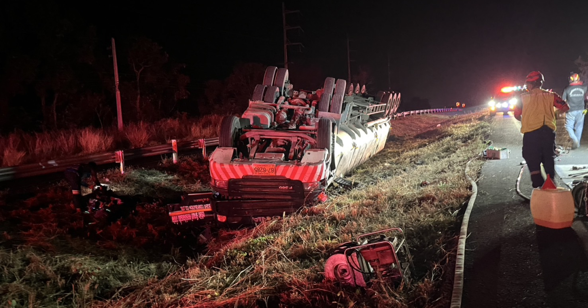 วันนี้(22ก.พ2567เวลาประมาณ04.00น.ได้รับแจ้งเหตุรถบรทุกน้ำมันเสียหลักลงร่องกลางถนนสายชัยภูมิ-แก้งคร้อ ม.4 ต.นาเสียว อ.เมืองชัยภูมิ จว.ชัยภูมิ ช่องทางไปแก้งคร้อ และได้ทราบจากกู้ภัยสว่างคุณธรรม ว่าคนขับรถเสียชีวิตพนักงานสอบสวนจึงได้เดินทางตรวจสถานที่เกิดเหตุพบรถยนต์บรรทุกพ่วงบรรทุกน้ำมันหมายเลขทะเบียน 67-6285 กทม. สภาพพลิกหงายอยู่ตรงร่องกลางถนน ส่วนคนขับเสียชีวิตอยู่ห้องโดยสาร เบื้องต้นทราบชื่อคนขับชื่อนายสุทธิพงศ์ ถาวร เป็นพนักงานของบริษัทรีเจนท์ คอปอเรชั่น จำกัด ขณะนี้อยู่ในระหว่างขั้นตอนนำศพออกจากห้องโดยสารรถซึ่งต้องใช้ความระมัดระวังเป็นกรณีพิเศษเนื่องจากถังน้ำมัน มีน้ำมันดีเซล โดยมีรถดับเพลิง อบต.นาเสียว ฉีดพ่นน้ำเป็นระยะ