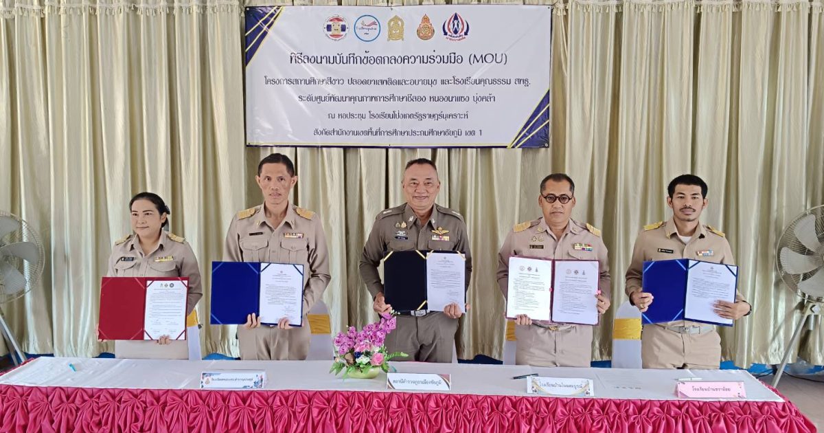 ร่วมลงนามบันทึกข้อตกลงความร่วมมือ (MOU) โครงการสถานศึกษาสีขาวปลอดยาเสพติด และอบายมุข