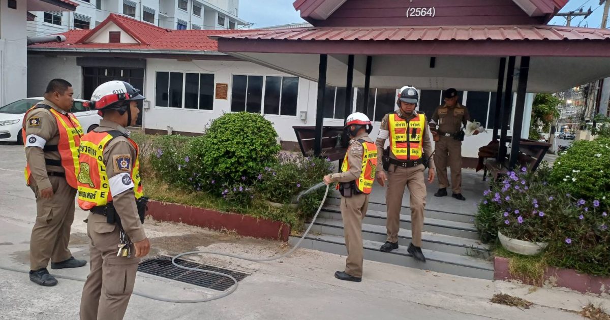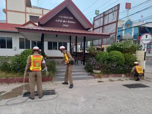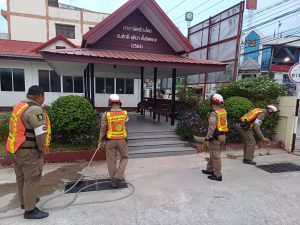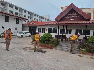 รอง สว.จร.สภ.เมืองชัยภูมิร้อยเวร 60 ร่วมกับสายตรวจจราจรชุดที่ 1 ทำความสะอาดศาลาพักญาติและรดน้ำต้นไม้