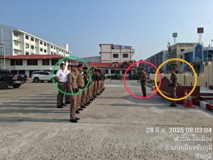 1.ตรวจจำนวนและความพร้อมในการปฏิบัติหน้าที่ การแต่งกาย อุปกรณ์บังคับ และยานพาหนะ