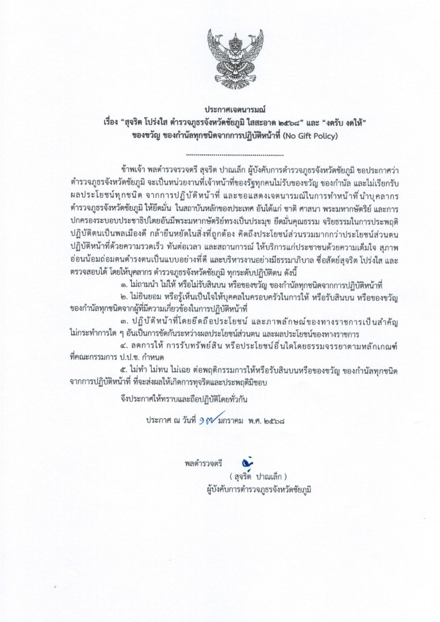 018 ประกาศนโยบายต่อต้านการรับสินบน (Anti-Bribery Policy)