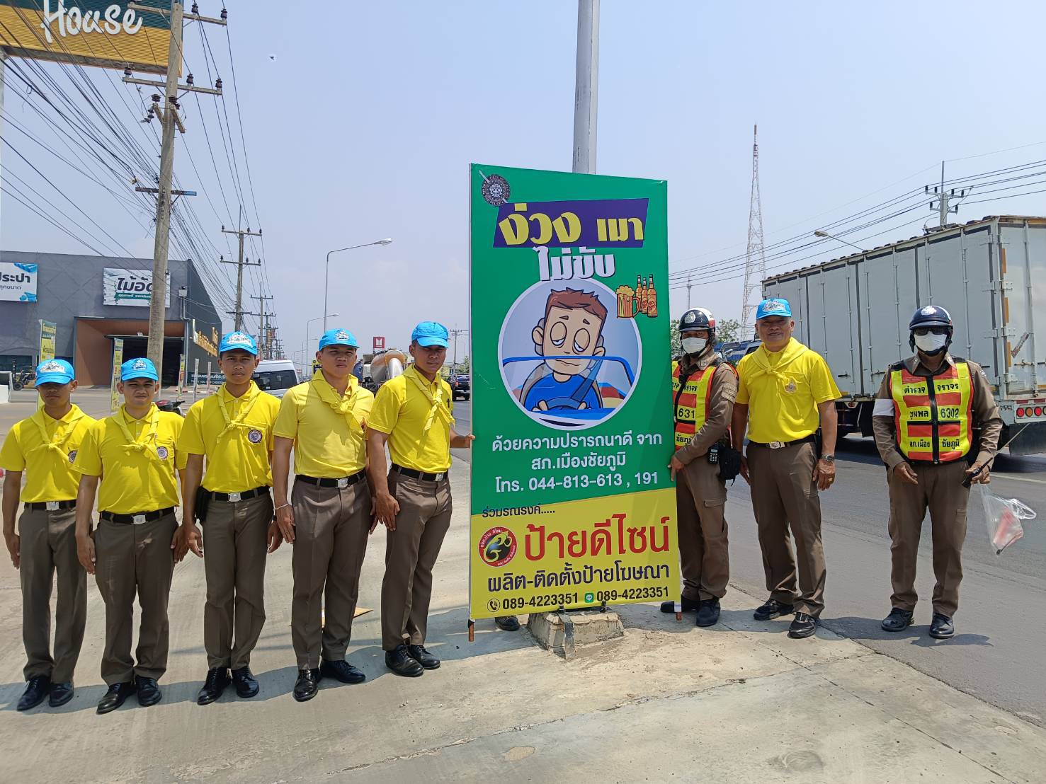 ชุดจิตอาสาพระราชทาน และสายตรวจจราจร ติดป้ายประชาสัมพันธ์รณรงค์ให้ประชาชนผู้ใช้รถใช้ถนนเคารพกฎจราจรช่วงเทศกาลสงกรานต์