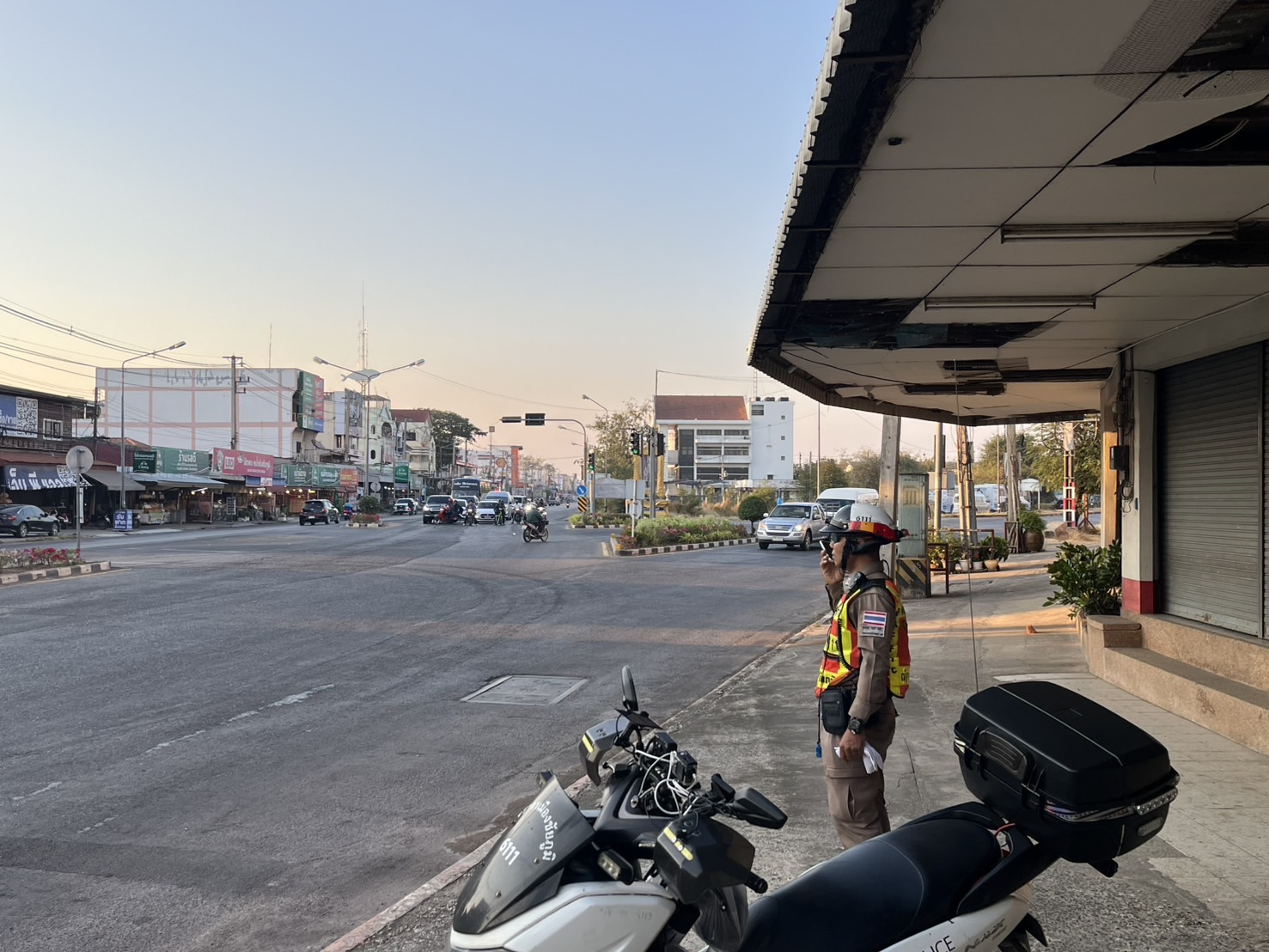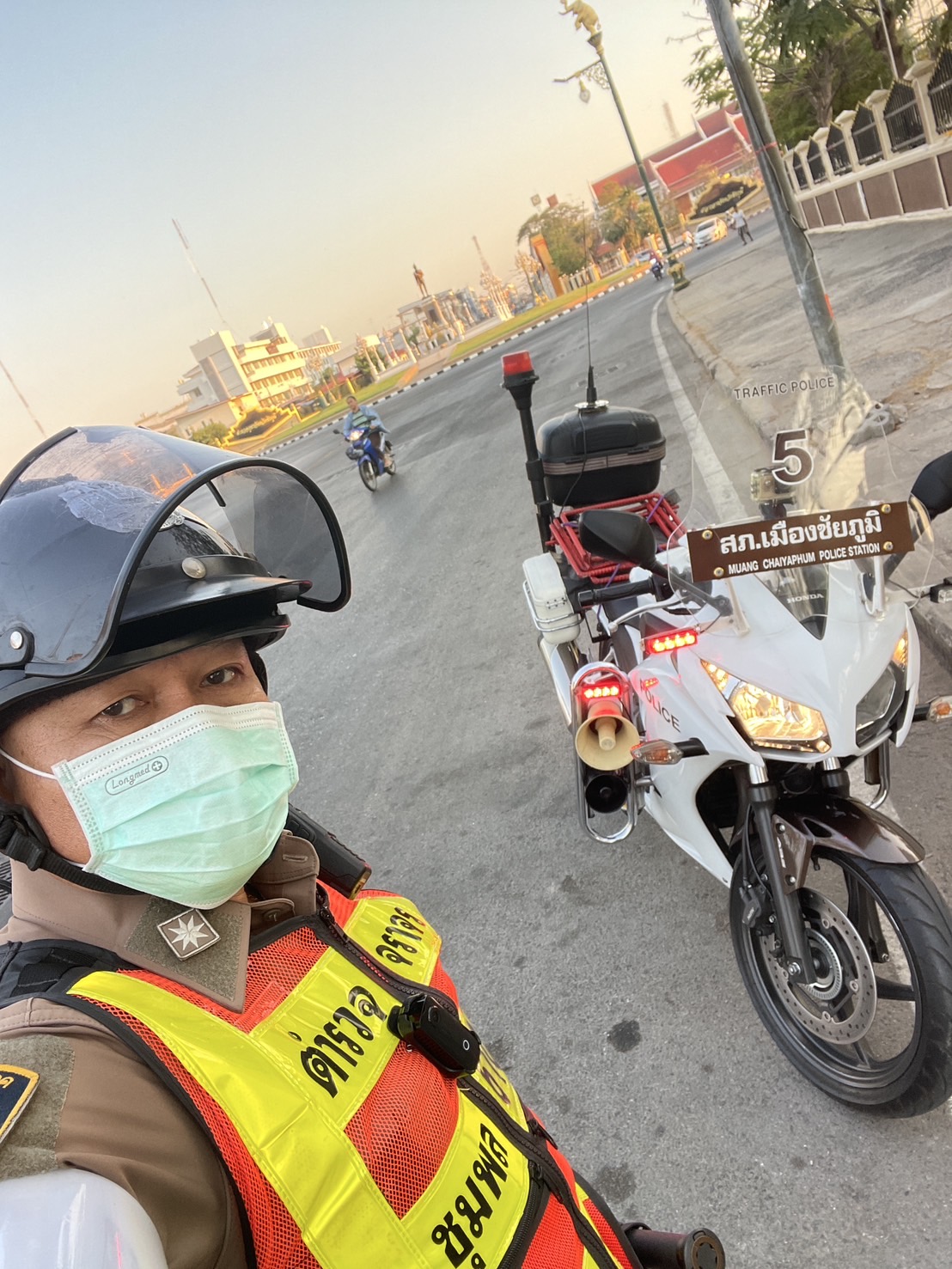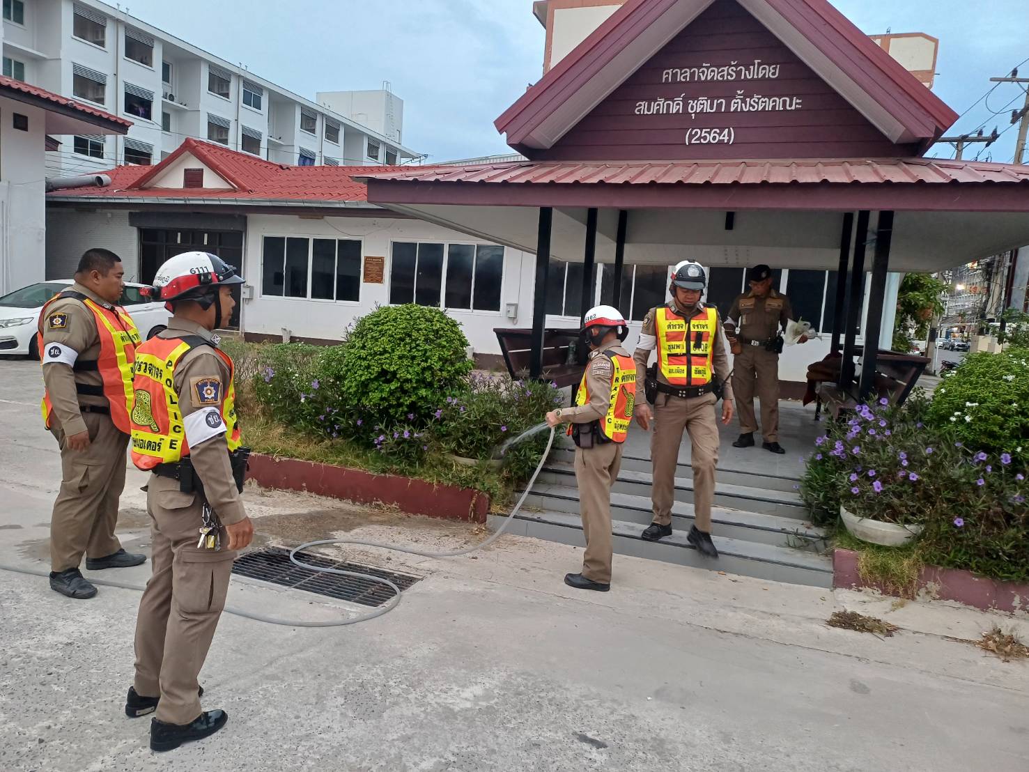 สายตรวจจราจร ทำความสะอาดศาลาพักญาติและรดน้ำต้นไม้
