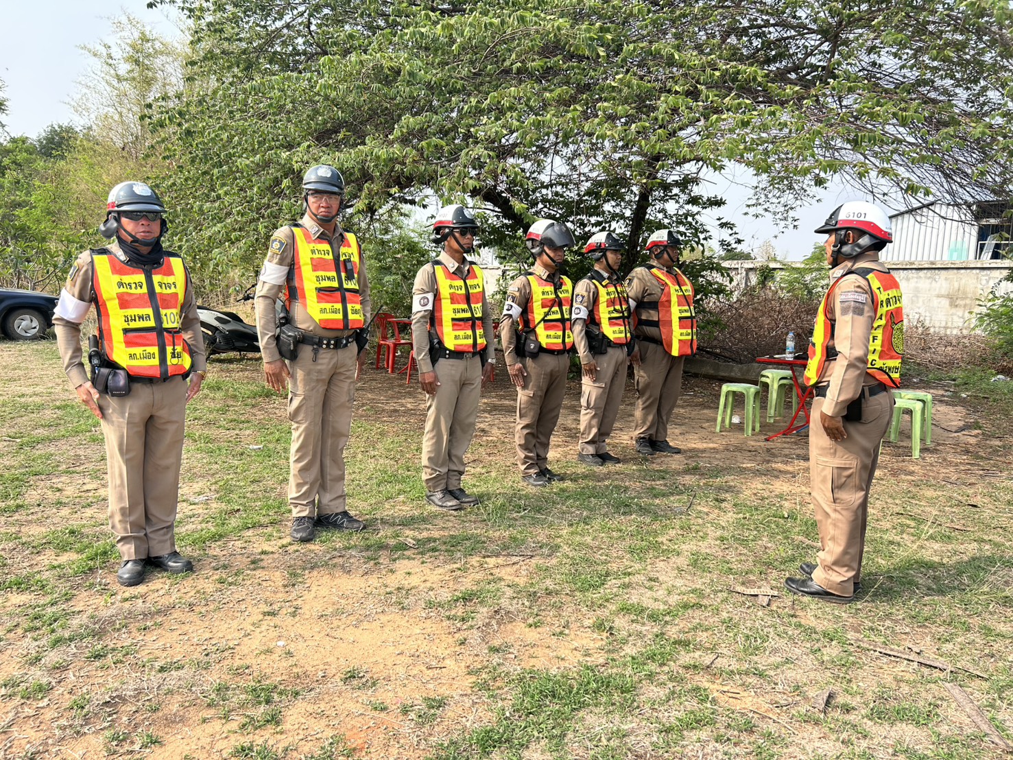 ตรวจจำนวน มอบหมายภารกิจประจำวัน ก่อนปล่อยแถวออกปฏิบัติหน้าที่ในเขตรับผิดชอบและชี้แจงข้อปฏิบัติ