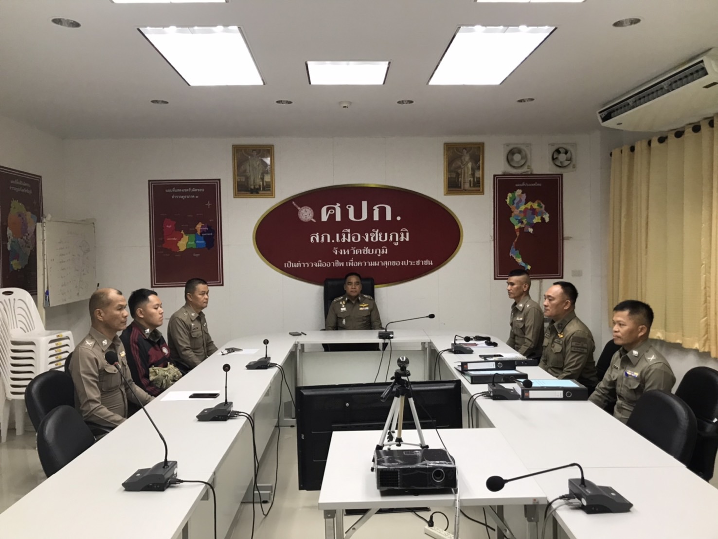 สายงานสอบสวนประชุมประจำเดือนงานสอบสวน ผกก เป็นประธานพร้อมทั้งรอง ผกก สอบสวน และพนักงานสอบสวน สภ เมือ