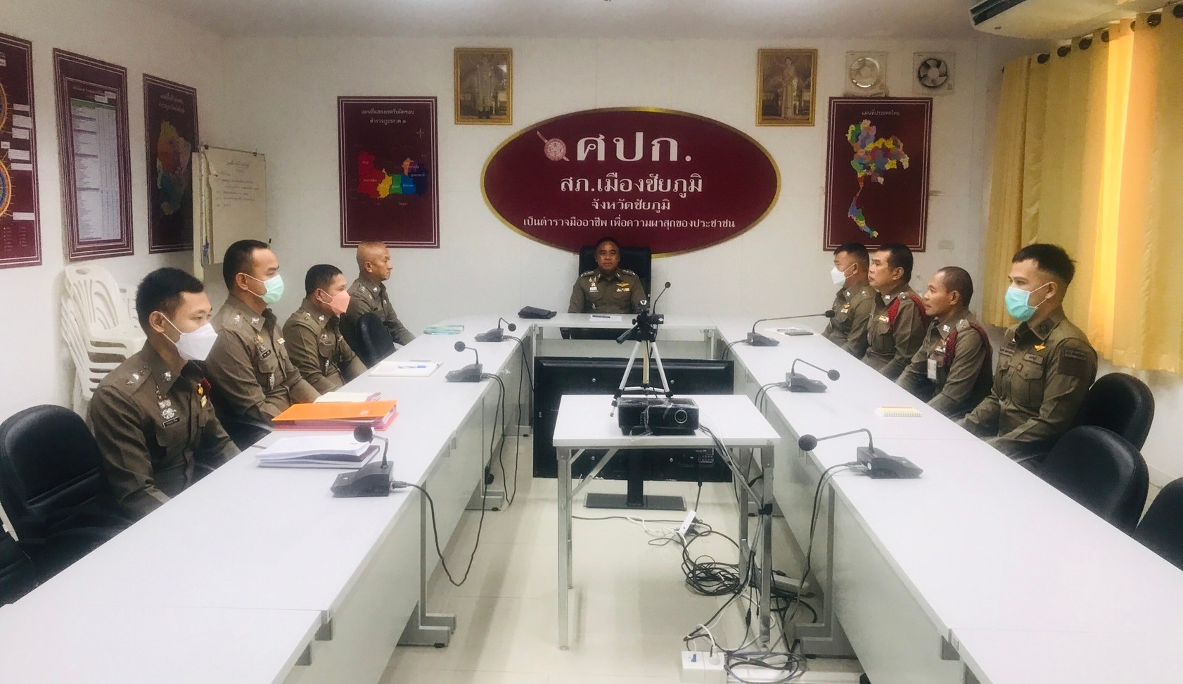 สายงานสอบสวนประชุมประจำเดือนงานสอบสวน ผกก เป็นประธาน พร้อมทั้งรอง ผกก สอบสวน และพนักงานสอบสวน สภ เมื
