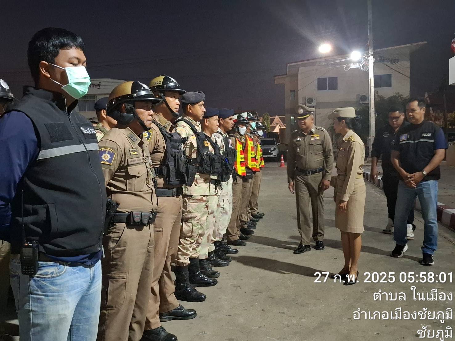 เรียนผู้บังคับบัญชา สภ.เมืองชัยภูมิ วันนี้ 27 กุมภาพันธ์ 2568 -เวลา 06.00 น. ปล่อยแถวระดมปิดล้อมตรวจ