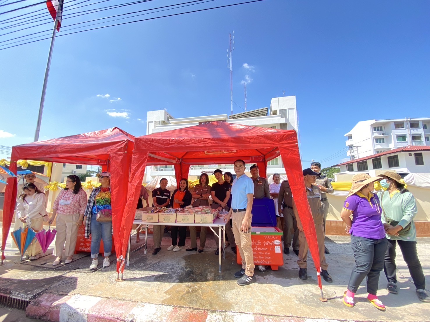 งานอำนวยการร่วมจัดจุดบริการเเจกน้ำดื่ม ขนมฯ ในงาน บุญเดือนหก แห่ฉลองเจ้าพ่อพญาเเล บริเวณหน้า สภ.เมือ