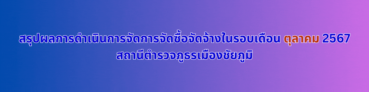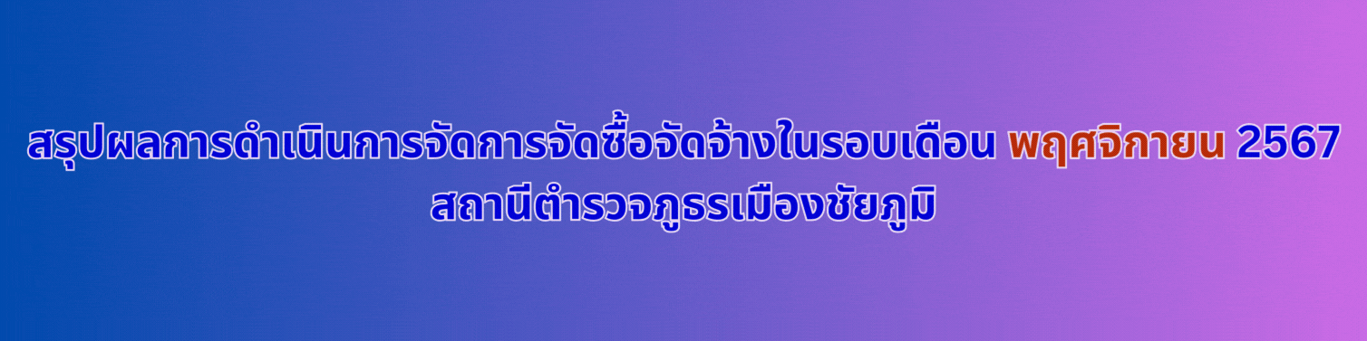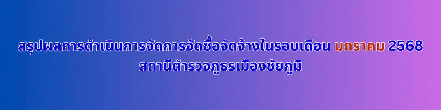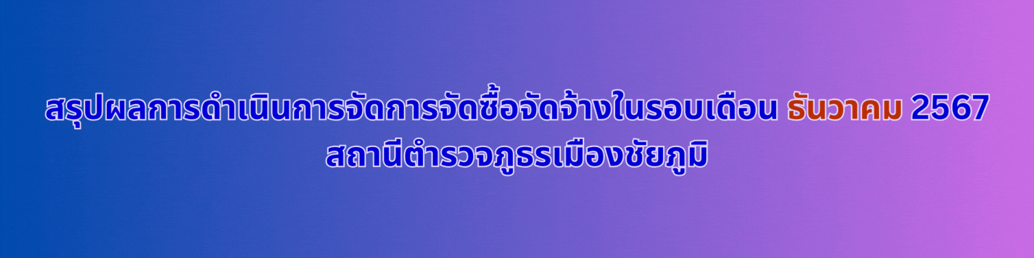 สถานีตำรวจภูธรเมืองชัยภูมิ ได้สรุปผลการดำเนินการจัดซื้อจัดจ้าง (สขร.1) ประจำเดือน โดยมีข้อมูลรายละเอียดผลการจัดซื้อจัดจ้าง ได้แก่ งานที่ซื้อหรือจ้างวงเงินที่ซื้อหรือจ้าง ราคากลาง วิธีการซื้อหรือจ้าง รายชื่อผู้เสนอราคาและราคาที่เสนอ ผู้ได้รับการคัดเลือกและราคาที่ตกลง เหตุผลที่คัดเลือกโดยสรุป เลขที่และวันที่ของสัญญา หรือข้อตกลงในการซื้อหรือจ้าง โดยจำแนกข้อมูลเป็นรายเดือน เผยแพร่เป็นประจำทุกเดือน ช่วง 6 เดือนแรกของปีงบประมาณ พ.ศ. 2568 มีรายละเอียดดังปรากฏด้านล่างนี้