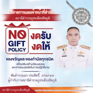 สถานีตำรวจภูธรเมืองชัยภูมิ โดย พันตำรวจเอก ประสิทธิ์ เปรมกมล ผู้กำกับการ สถานีตำรวจภูธรเมืองชัยภูมิ จัดทำประกาศ สถานีตำรวจภูธรเมืองชัยภูมิ เรื่อง นโยบายต่อต้านการรับสินบน (No Bribery Policy) และ นโยบายการไม่รับของขวัญของกำนัลหรือประโยชน์อื่นใด (์No Gift Policy) ลงวันที่ 11 กุมภาพันธ์ 2568 ให้มีความสอดคล้องและครอบคลุมประเด็นในการเสริมสร้างคุณธรรมและความโปร่งใส และต่อต้านการทุริต/ต่อต้านการรับสินบนในหน่วยงาน รวมทั้งได้ประชาสัมพันธ์ผ่านเว็บไซต์ที่บริเวณหน้าหลัก Home จัดทำป้ายประกาศ ติดตั้งบริเวณหน้าศูนย์บริการประชาชน One Stop Service