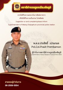 เรียน ผู้บังคับบัญชา วันนี้ 27 มี.ค. 2568 เวลา 16.01 น. พ.ต.อ.ประสิทธิ์ เปรมกมล ผกก.สภ.เมืองชัยภูมิ